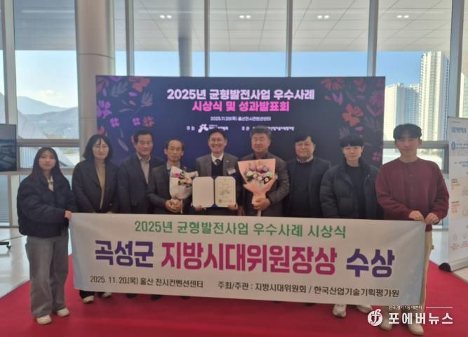 [ 포에버뉴스 오명숙 기자 ] 전남 곡성군은 지난 20일 대통령직속 지방시대위원회가 주최한 ‘2025년 지역균형발전사업 우수사례 시상식’에서 우수사례 추진 기관 표창(지방시대위원장상)을 받았다고 21일 밝혔다.