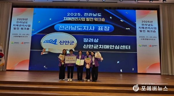 [ 포에버뉴스 오명숙 기자 ] 신안군 치매안심센터가 25일 고흥군에서 열린 ‘2025년 전라남도 치매관리사업 발전대회’에서 도내 22개 시·군 보건소 중 우수기관으로 선정돼 전라남도지사 기관표창을 수상했다.