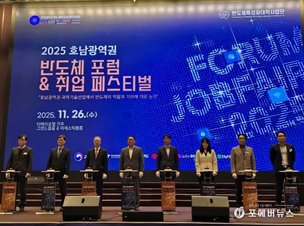 26일 전주 더메이호텔에서 김종훈 전북자치도 경제부지사, 우범기 전주시장, 양오봉 전북대 총장, 전세희 전북지방중소벤처기업청장, 김양현 전남대 부총장 등이 참석한 가운데 '호남 광역권 반도체 포럼 및 취업페스티벌'이 열렸다.