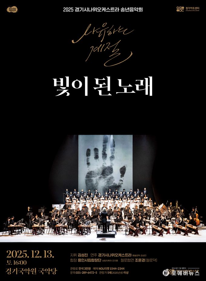 [ 포에버뉴스 김경순 기자 ] 경기아트센터 경기시나위오케스트라는 연말을 맞아 오는 12월 13일 경기국악원 국악당에서 송년음악회 <사유하는 계절 : 빛이 된 노래>를 선보인다. 이번 공연은 한 해의 마무리와 함께 광복 80주년을 기념하는 의미를 담고 있다.