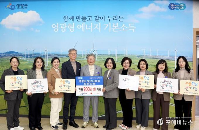 [ 포에버뉴스 오명숙 기자 ] 영광군은 12월 3일 영광군보건소 공직자들의 봉사 모임인 보건나눔회가‘희망2026 나눔캠페인’에 동참하기 위해 성금 2백만 원을 기탁했다고 밝혔다.