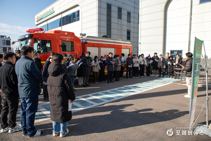 훈련은 추운 날씨 속에서도 김민철 경상원장을 비롯한 임직원이 적극적으로 참여한 가운데 양평소방서 공흥119센터와 합동으로 진행됐다. 실제 재난 상황을 가정해 행동 요령과 주의사항을 점검하고, 즉각적인 대처 능력을 집중적으로 점검했다.