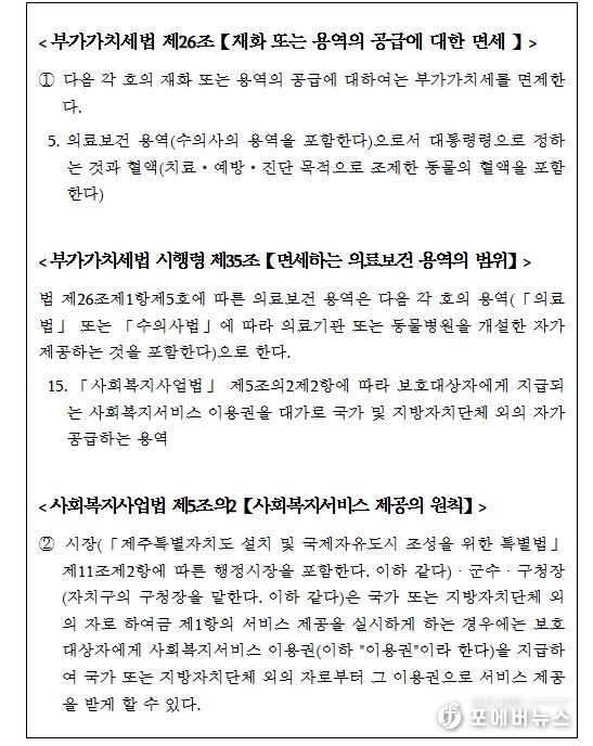 그동안 업계에서는 바우처 방식의 산모‧신생아 돌봄 서비스는 바우처를 대가로 산모에게 공급하는 용역이며, 해당 용역은 부가가치세 면세대상 용역*에 해당되므로 본인부담금 부분도 면세로 보아야 한다고 주장하며, 현장에서 과‧면세 적용 여부로 혼란을 겪음에 따라 본인부담금 부분에 대해 과세로 판단한 기존 유권해석에 대한 재검토를 지속적으로 건의해 왔다.