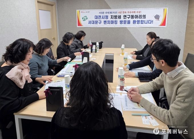 [ 포에버뉴스 김경순 기자 ] 서대문구는 대전광역시 세정담당관실이 지방세 연구 역량을 강화하고 실무형 연구조직 운영 사례를 벤치마킹하기 위해 최근 구를 방문했다고 8일 밝혔다.