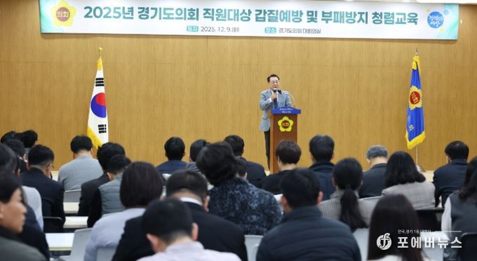 [ 포에버뉴스 김경순 기자 ] 경기도의회는 9일 오전 의회 대회의실에서 전 직원을 대상으로 ‘갑질예방 및 부패방지 청렴교육’을 실시했다.