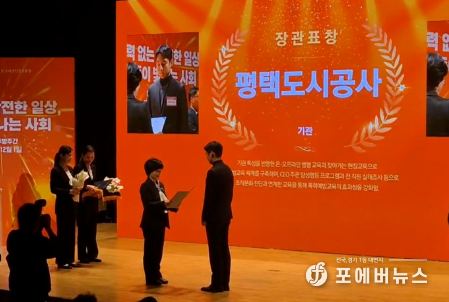 평택도시공사는 지난 25일 오후 서울여성플라자 아트홀봄에서 개최된 ‘제6회 여성폭력추방주간 기념식’과 관련해 지방공기업으로는 유일하게 폭력예방교육 우수기관에 선정돼 성평등가족부 장관 표창을 수상했다고 29일 밝혔다.