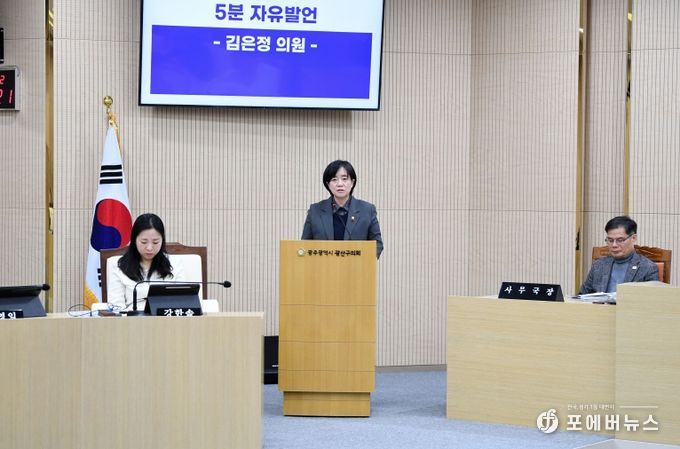 [ 포에버뉴스 오명숙 기자 ] 김은정 광산구의원(진보당, 첨단1·2동)은 19일 열린 제301회 광산구의회 정례회 제4차 본회의에서 5분 자유발언을 통해 광산구 보건소 공무직 노동자들의 열악한 처우를 강하게 비판하고 광산구의 즉각적인 개선을 촉구했다.