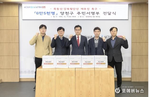 [ 포에버뉴스 김경순 기자 ] 양천구는 ‘목동선 및 강북횡단선 재추진 촉구’ 주민 서명운동을 완료하고, 6만 5천 명의 서명부를 모아 지난 17일 전달식을 개최하며 본격적인 대외 건의 활동에 나선다고 밝혔다.
