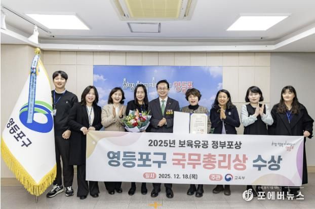 [ 포에버뉴스 김경순 기자 ] 영등포구가 교육부 주관 ‘2025년 보육유공 정부포상’ 에서 지자체 부문 국무총리 표창을 수상했다고 밝혔다. 보육 분야에서 정부포상을 받은 것은 이번이 처음으로, 구가 추진해온 보육정책 전반이 국가 차원에서 공식 인정받았다는 점에서 의미가 있다.