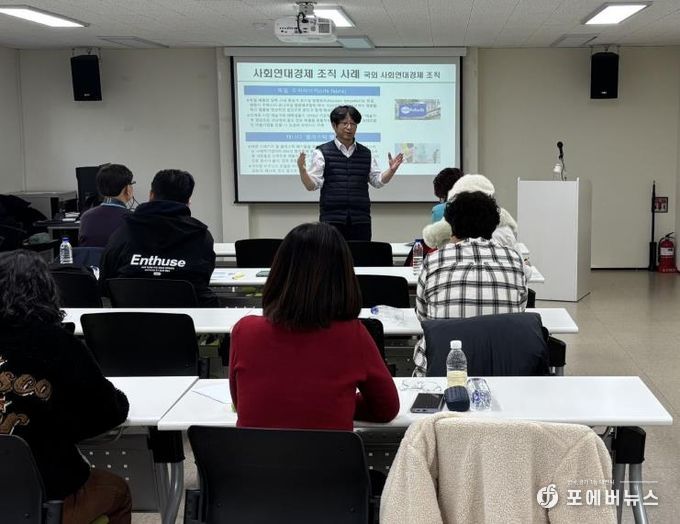 이날 교육은 서울사이버대학교 이병욱 교수가 강사로 나서 ‘사회적경제의 기본 개념과 사회적경제조직 창업 및 운영 실무’를 주제로 진행됐다. 강의에서는 ▲사회연대경제의 의미와 흐름 ▲사회적경제조직 유형 및 지원 정책 ▲우수 운영 사례 등이 소개됐다.