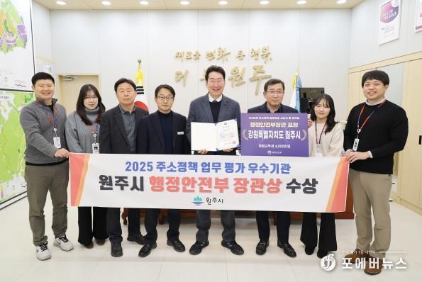 [ 포에버뉴스 방미정 기자 ] 원주시는 최근 행정안전부가 주관한 ‘2025 주소정책 성과 공유 워크숍’에서 주소정책 업무 평가 우수 기관으로 선정돼, 행정안전부장관 표창을 수상하고 특별교부세 4천만 원을 확보했다.