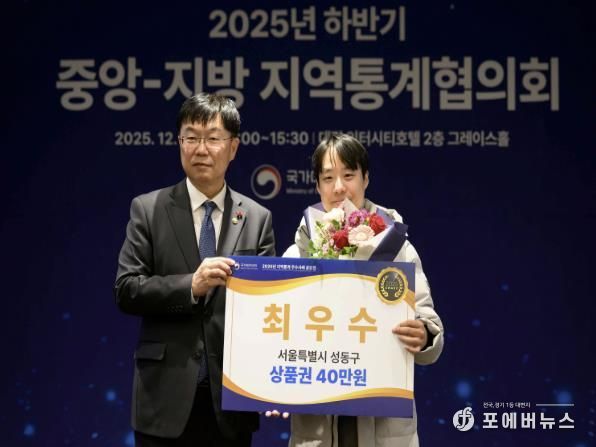 [ 포에버뉴스 김경순 기자 ] 서울 성동구는 국가데이터처가 주관한 ‘2025년 지역통계 우수사례 공모전’에서 최우수상을 수상했다고 밝혔다.