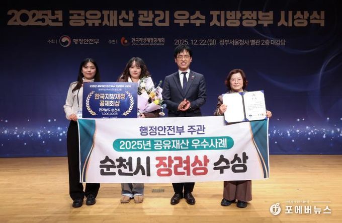 [ 포에버뉴스 오명숙 기자 ] 순천시는 지난 22일 행정안전부 주관으로 정부서울청사에서 열린 ‘2025년 공유재산 우수 지방단체 시상식’에서 공유재산 우수사례 경진대회 부분 ‘장려상’을 수상했다고 밝혔다.