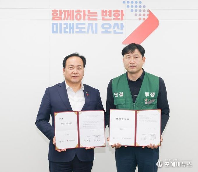 안재형 전국민주연합노동조합 오산지부장은 “대화와 신뢰를 바탕으로 협약을 체결하게 돼 의미 있게 생각한다”며 “앞으로도 공무직 근로자의 처우가 지속적으로 개선될 수 있도록 상호 존중 속에서 원만한 노사관계를 이어가길 바란다”고 전했다.