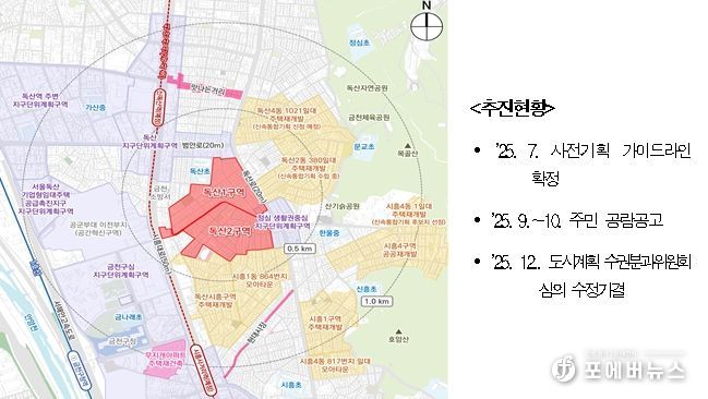 [ 포에버뉴스 사공선 기자 ] 서울시는 2025년 12월 24일 '제14차 도시계획위원회 신속통합기획 정비사업 등 수권분과위원회'를 개최하여 ‘독산동 1036일대(독산1구역)’과 ‘독산동 1072 일대(독산2구역)’ 주택정비형 재개발사업 정비구역 지정 및 정비계획 결정(안)을 '수정가결' 했다고 밝혔다.