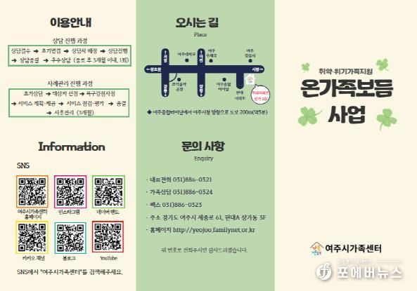 [ 포에버뉴스 박정배 기자 ] 여주시가족센터는 가족의 다양성을 존중하고 취약·위기가정의 안정적인 삶을 지원하기 위해 '온가족보듬사업'을 적극적으로 운영했다.