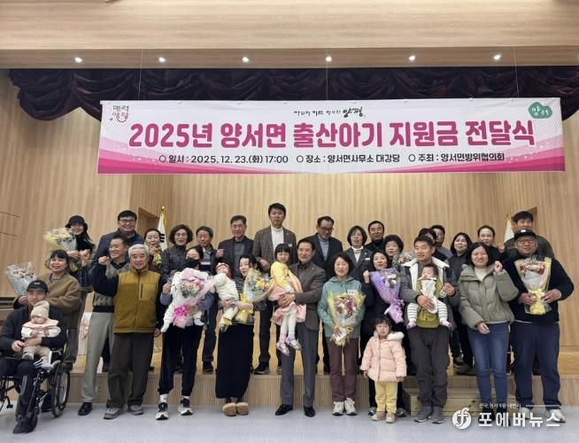 [ 포에버뉴스 박정배 기자 ] 양서면 방위협의회는 지난 23일 저출산 극복과 출산 장려 분위기 조성을 위해 ‘2025년 양서면 출산아기 지원금 전달식’을 개최했다.