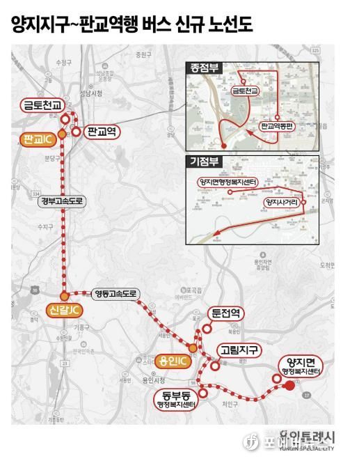 [ 포에버뉴스 김경순 기자 ] 용인 양지지구를 출발해 고림동과 둔전역을 거쳐 성남 판교역까지 운행하는 버스 노선이 확정됐다.