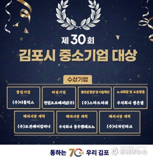 김포시 중소기업대상은 1996년부터 시작해 올해로 30회를 맞이한 김포시 중소기업 분야 최고 권위의 시상으로, 관내 우수 중소기업을 발굴·격려하기 위해 매년 추진되고 있다.