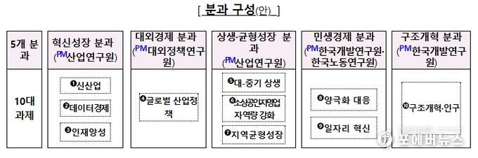 오늘 회의에서는 경인사연 소속 연구기관들이 집중 연구할 경제 대도약 10대 과제를 선별해 5개 분과로 편성하고 분과별 주관 연구기관(PM)을 지정했다. 아울러 연구 성과가 실제 정책으로 이어질 수 있도록 기재부를 중심으로 관계부처가 분과별 논의에 적극 참여해 연구기관들과 의견을 교환하도록 할 계획이다.