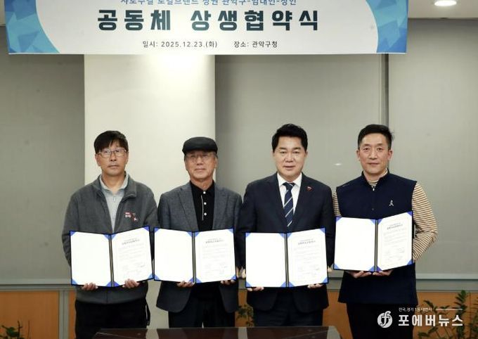 구는 지난 23일 관악구-임대인-상인 간 ‘샤로수길 로컬브랜드 상권 공동체 상생협약’을 체결했다. 협약식에는 샤로수길 임대인 모임 대표와 샤로수길 상인회 회장이 참여했고, 협약 내용에 샤로수길 임대인 101명과 상인 235명이 동의하며 높은 관심과 지지를 보였다.