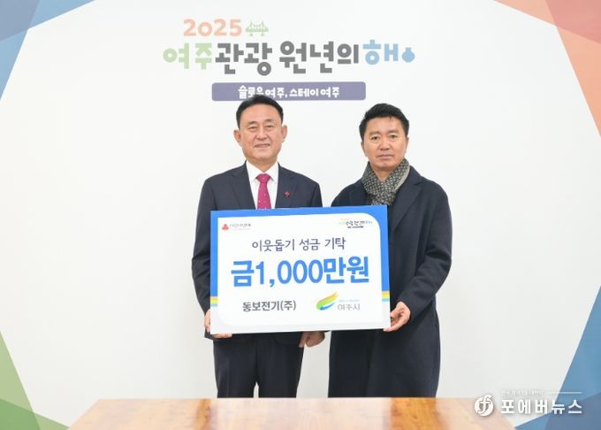 [ 포에버뉴스 박정배 기자 ] 지난 30일 동보전기 및 주식회사 부광에너지는 여주시를 방문하여 관내 저소득층을 위한 이웃돕기 성금으로 각 1,000만원을 기탁했다