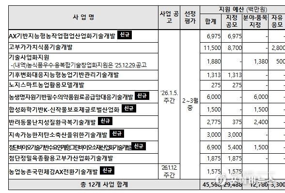[ 포에버뉴스 사공선 기자 ] 농림축산식품부는 1월 5일, 2026년도 농식품부 연구개발사업의 지원사업․내용․대상․일정 등을 담은 연구개발사업 시행계획을 통합 공고한다고 밝혔다.