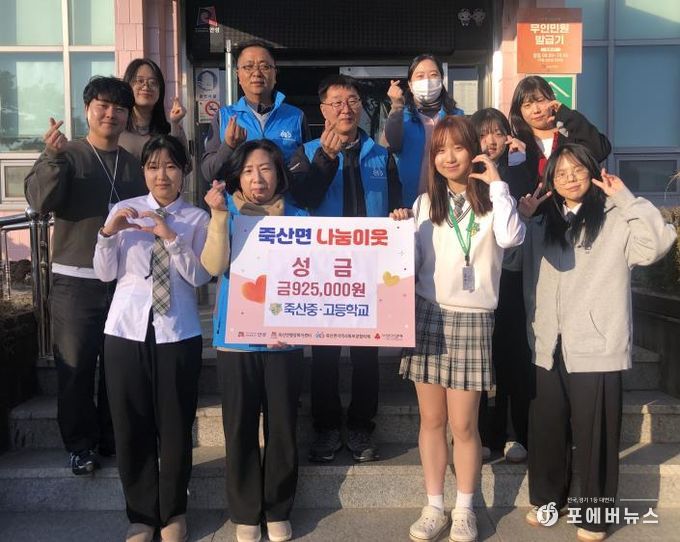 [ 포에버뉴스 김경순 기자 ] 죽산중·고등학교는 지난 2일 2025학년도 동아리박람회 수익금 전액인 925,000원을 죽산면 저소득층을 위해 죽산면지역사회보장협의체에 기탁했다.
