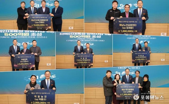 구보다농기계 해남대리점 이병현 대표와 SK전기안전관리 박종섭 대표도 각각 500만원, 200만원을 기탁하며“지역사회에서 사업을 하며, 언제나 지역에 되갚고자 하는 마음이었으나, 이제야 실천하게 됐다”고 지속 참여 의사를 밝혔다.
