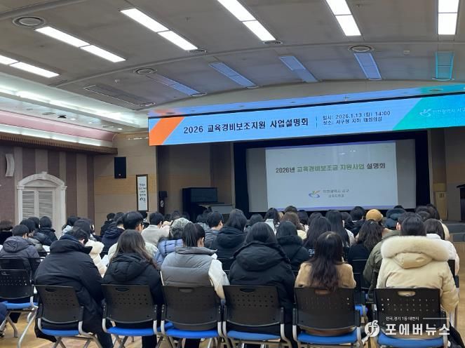 [ 포에버뉴스 김경순 기자 ] 인천광역시 서구는 2026년도 교육경비 보조지원 사업의 원활한 추진을 위해 관내 초·중·고·특수학교 교육경비사업 담당 실무자 84명이 참석한 가운데 ‘2026년 교육경비보조지원 사업설명회’를 개최했다.