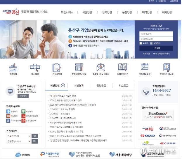 [ 포에버뉴스 김경순 기자 ] 서울 용산구가 2026년에도 ‘맞춤형 입찰정보시스템’을 운영해 지역 내 중소기업·소상공인이 관심 분야의 공공입찰 정보를 빠르고 정확하게 받아볼 수 있도록 지원한다. 정보 탐색 부담을 줄이고 공공조달 참여를 촉진해 지역 기업들의 판로를 개척하고 지역경제를 활성화하기 위한 취지다.