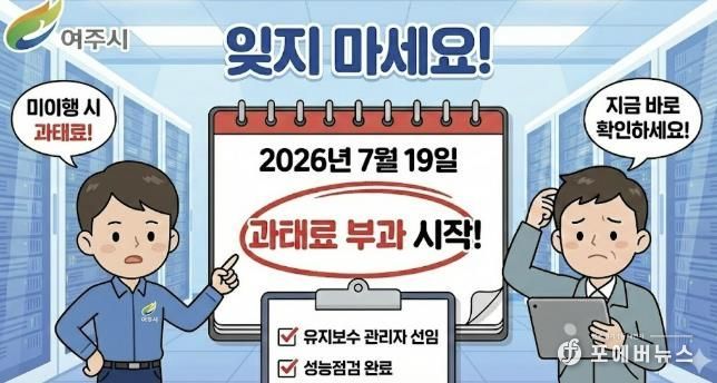 [ 포에버뉴스 박정배 기자 ] 여주시는 건축물 내 정보통신설비의 안전성 확보와 성능 유지를 위한 ‘정보통신설비 유지보수제도’의 과태료 부과 계도기간이 2026년 7월 18일까지 6개월 추가 연장됐다고 밝혔다.