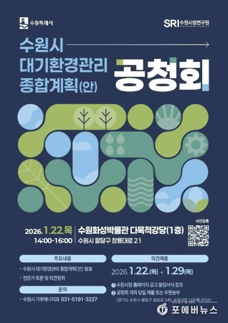 공청회는 수원시 대기환경관리 종합계획(안) 발표로 시작해 전문가 토론, 질의·의견 청취 순으로 진행된다.