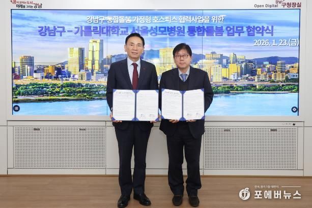 [ 포에버뉴스 김경순 기자 ] 꿈이 모이는 도시, 미래를 그리는 강남구가 1월 23일 구청에서 가톨릭대학교 서울성모병원과 ‘강남구 통합돌봄 가정형 호스피스 협력사업’ 추진을 위한 업무협약(MOU)을 체결했다. 이 협약은 자치구와 상급종합병원이 연계해 가정형 호스피스를 지원하는 체계를 공식화했다는 점에서 그 의미가 크다.