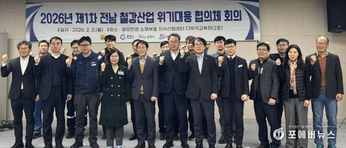 이날 회의는 전남 철강산업 위기대응 전략 수립 연구용역의 최종 결과 발표와 함께 2026년 광양시 위기대응 지원사업, 순천시 철강산업 경쟁력 강화 지원사업 보고 및 향후 전략 논의 순으로 진행됐다.