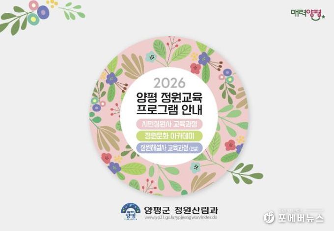 [ 포에버뉴스 박정배 기자 ] 양평군은 올해 제14회 경기정원문화박람회 개최를 앞두고, 특별 신설 교육과정을 포함한 2026년 정원교육 운영계획을 발표했다. 양평군 정원교육은 △시민정원사 △정원문화아카데미 △정원해설사 등 세 가지 분야로 운영된다.