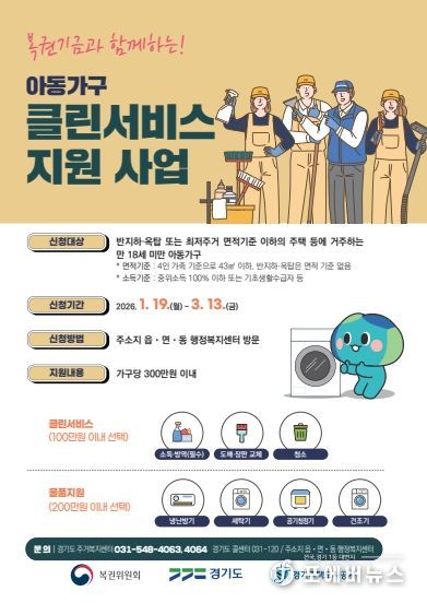 [ 포에버뉴스 박정배 기자 ] 경기도에서 열악한 주거환경에 거주하는 아동가구들을 위한 ‘아동가구 클린서비스 지원 사업’을 복권기금과 함께 추진한다.