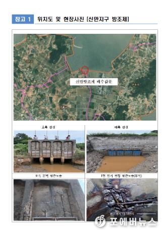 해제면 신만방조제 개보수사업은 노후 배수갑문의 성능 보완과 기능 향상을 위한 정비사업으로, 총 40억 원(국비 20억 원·도비 4억 원·군비 16억 원)이 투입된다.