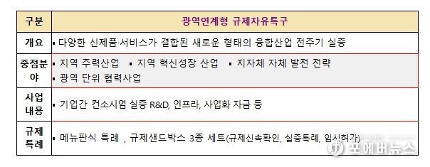 [ 포에버뉴스 사공선 기자 ] 중소벤처기업부는 6일 비수도권 광역자치단체를 대상으로 ’26년도 ‘광역연계형 규제자유특구’의 신규 지정을 위한 특구 후보과제를 공모한다고 밝혔다.