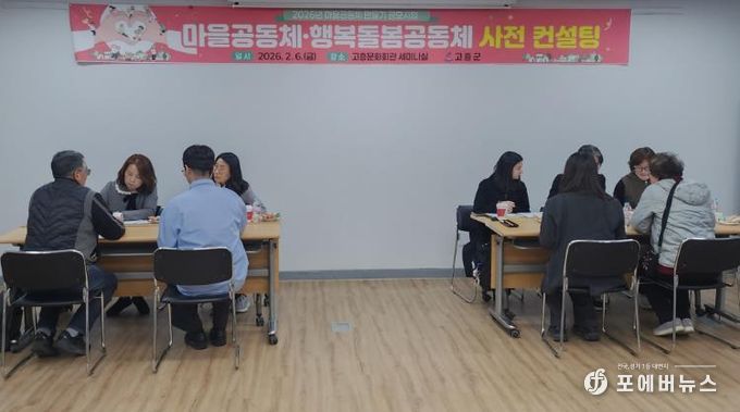 [ 포에버뉴스 오명숙 기자 ] 고흥군은 6일 고흥문화회관 세미나실에서 2026년 마을공동체 공모사업에 선정된 공동체를 대상으로 사업의 방향성과 실행력을 높이기 위한 사전 컨설팅을 실시했다고 밝혔다.