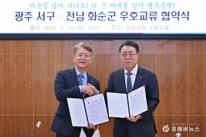 [ 포에버뉴스 오명숙 기자 ] 광주광역시 서구는 10일 전라남도 화순군청에서 화순군과 우호교류 협약을 체결하고 생활권을 공유하는 이웃 지자체 간 협력과 공동발전을 위한 상생 체계를 구축하기로 했다.