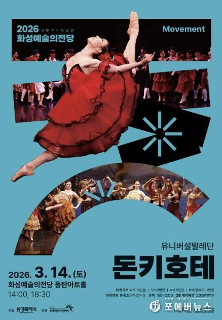 [ 포에버뉴스 김경순 기자 ] 발레 테크닉의 묘미를 만날 수 있는 희극 발레 대표작 유니버설발레단'돈키호테'가 3월 14일 14시,18시 30분, 2회에 걸쳐 화성예술의전당 동탄아트홀을 찾아온다.