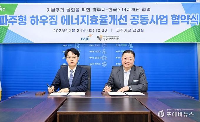 [ 포에버뉴스 김경순 기자 ] 파주시는 지난 24일 한국에너지재단과 ‘기본주거 실현을 위한 파주형 하우징 에너지효율개선 공동사업’업무협약을 체결했다.