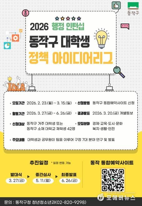 박일하 동작구청장은 “대학생 정책 아이디어리그는 청년의 참신한 시각과 행정의 경험이 만나 실질적인 정책으로 이어지는 협업 모델”이라며, “앞으로도 청년이 구정의 주체로 참여할 수 있는 기회를 지속적으로 확대해 나가겠다”고 말했다.