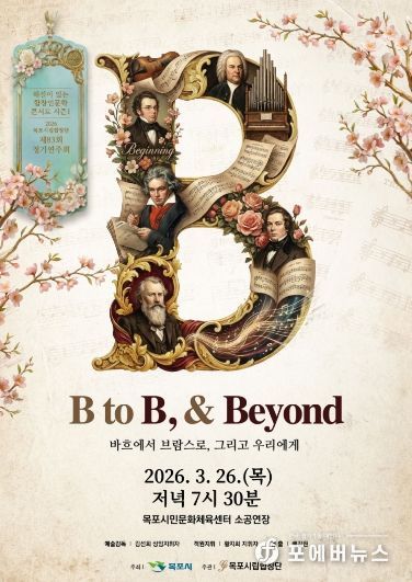 [ 포에버뉴스 오명숙 기자 ] 목포시립합창단(예술감독 겸 상임지휘자 김선희)이 오는 3월 26일 오후 7시 30분, 목포시민문화체육센터 소공연장에서 제83회 정기연주회 'B to B & Beyond(Bach to Brahms) : 해설이 있는 합창인문학콘서트 시즌1'을 개최한다.