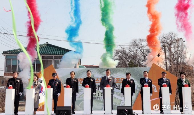 도는 5일 공주시 동현동 일원에서 전형식 도 정무부지사와 한상배 한국식품안전관리인증원장, 이종규 한국쌀가공식품협회 상임부회장, 최원철 공주시장 등이 참석한 가운데 ‘공주 동현지구 스마트 창조도시 조성사업’ 착공식을 개최했다.
