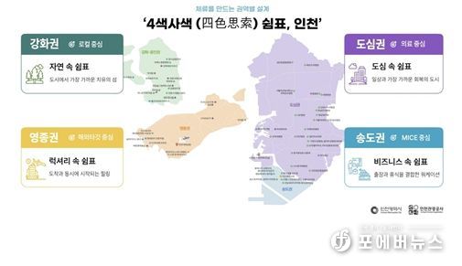 특히 이번 사업은 ‘성과를 넘어 산업화로’라는 비전 아래 인천 전역을 4개 권역으로 구분해 지역 특성에 맞는 치유·웰니스 모델을 구축하는 ‘4색사색’ 전략을 핵심으로 추진된다.