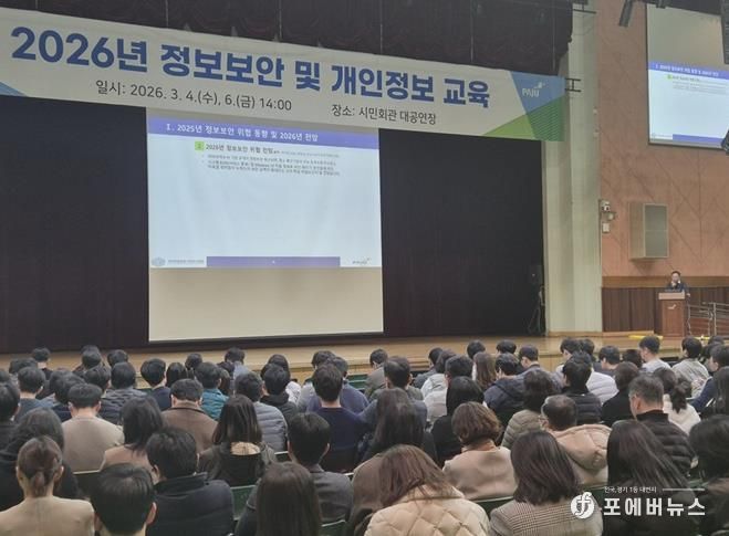 교육은 정보 보안 전문가가 강사로 나서 현장 중심의 실무 내용 위주로 진행됐다. 주요 내용은 ▲2026년 보안 위협 전망 및 침해 사고 사례 분석 ▲생성형 인공지능(AI) 안전 활용 지침(가이드라인) ▲사고 발생 시 신속한 신고 및 대응 절차 ▲'개인정보 보호법' 준수 사항 및 실무 보안 수칙 등이다.