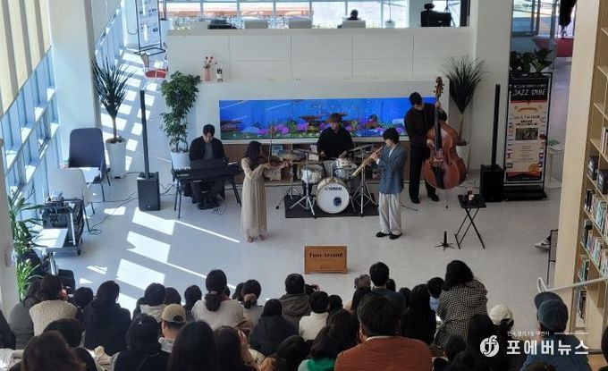 [ 포에버뉴스 김경순 기자 ] 오산시는 지난 7일 청학도서관 1층 커뮤니티스테어에서 열린 재개관 기념 공연 ‘2026 음악이 흐르는 도서관 콘서트 – 재즈&북(Book)의 향연: JAZZ VIBE’가 시민들의 큰 호응 속에 성황리에 마무리됐다고 밝혔다.