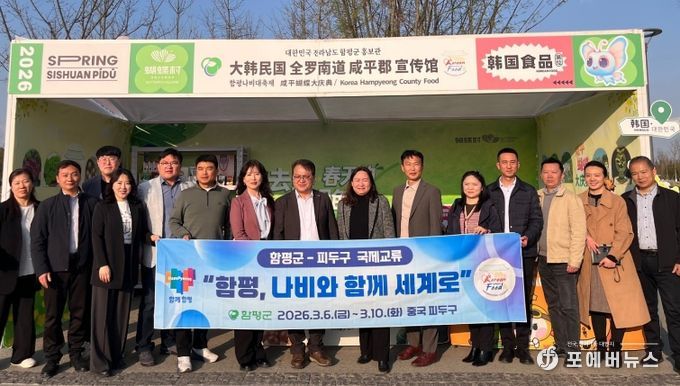 함평군은 “지난 7~9일 중국 청두시 피두구에서 열린 ‘제4회 나비촌 유채꽃축제’를 방문해 ▲축제 교류 ▲농특산품 브랜드 K-HC(Korea-Hampyeong County)푸드 판로 개척 ▲농업 교류 등 다양한 분야에서 양 지역 간 실질적인 협력을 구체화하고 글로벌 협력 기반을 다졌다”고 10일 밝혔다.